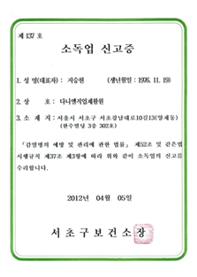 • 소독업신고증